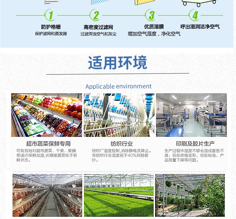 2、加湿范围大、加湿均匀,加湿洁净、无白粉