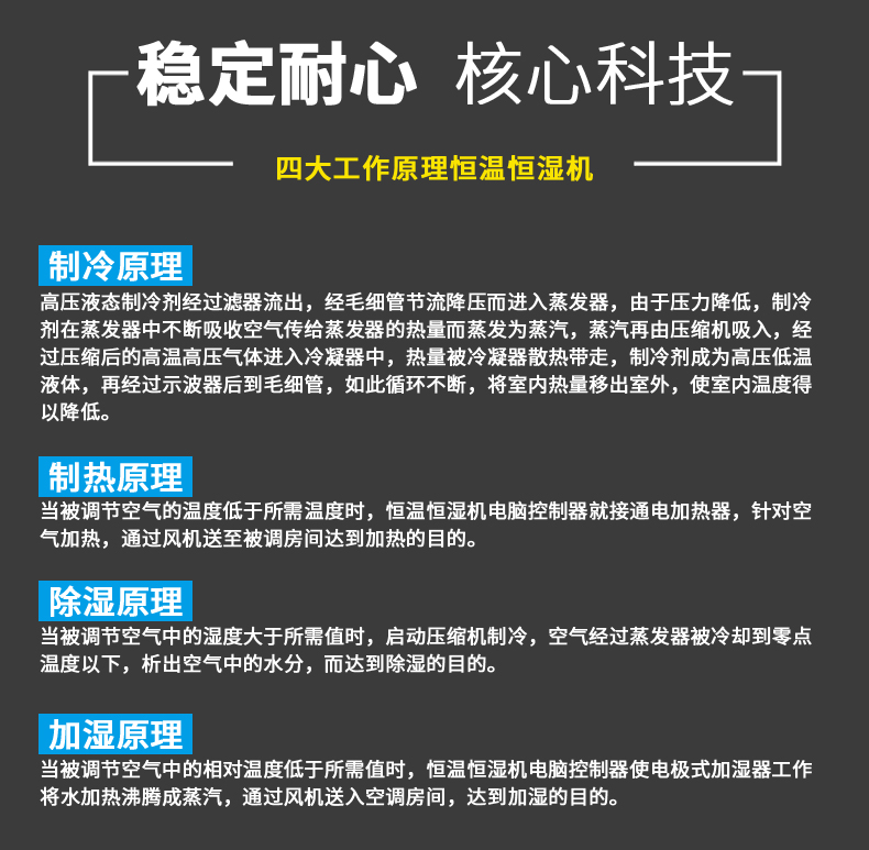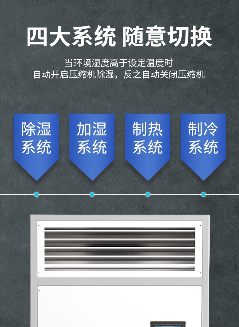 2、采用国际名牌压缩机,动力强劲,强力控温控湿